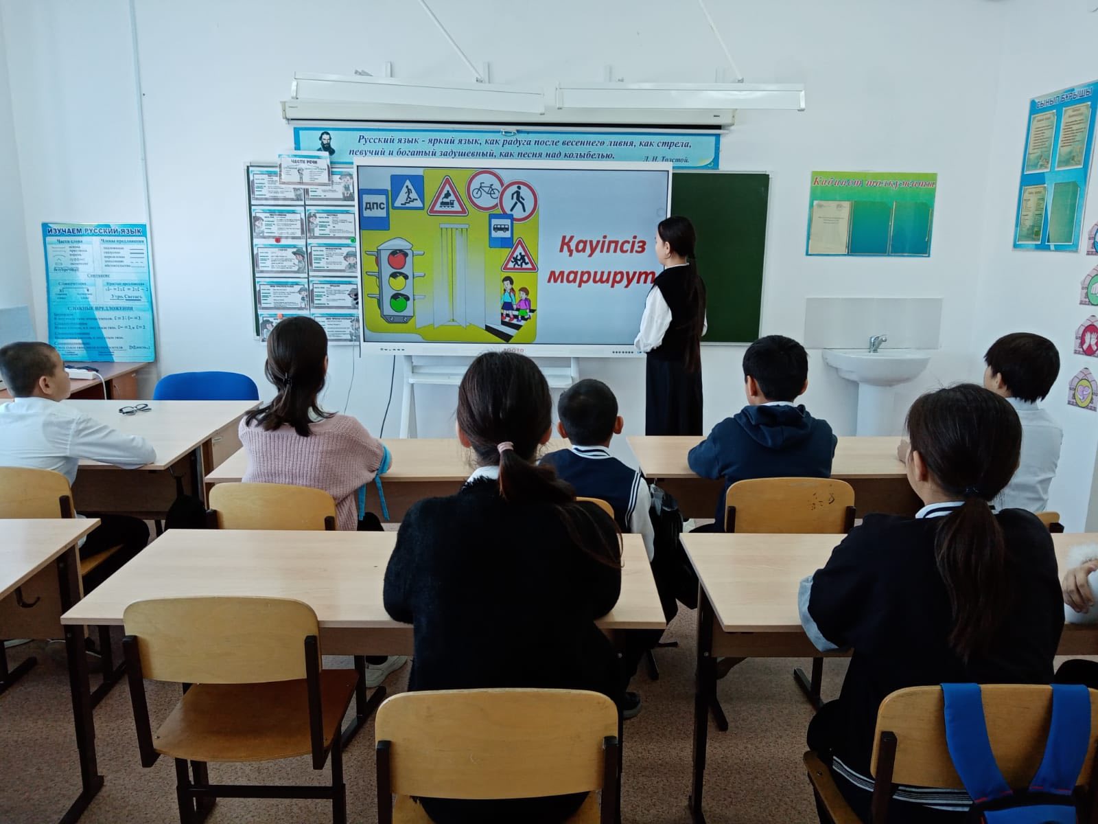 "Заң және тәртіп" айлығы аясында Ә. Кекілбайұлы атындағы орта мектебінің 5,6,8 сынып оқушыларымен "Қауіпсіз маршрут" тақырыбына түсінік жұмысы өткізілді.