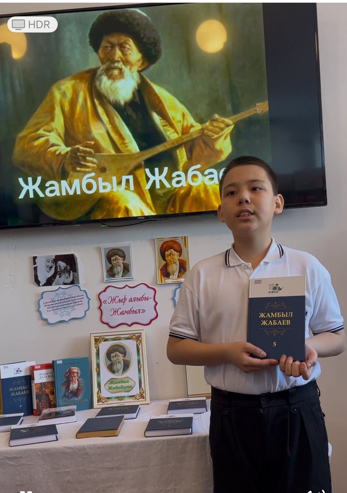 Іс-шара барысында Жамбыл Жабаевтың өмір жолы мен шығармашылық мұрасы кеңінен таныстырылып, ақынның қазақ әдебиетіндегі орны туралы мағлұмат беріліп, кішкентай оқырмандарымыз ақынның өлең-жырларын оқыды. Кітапхана қорындағы Жамбыл Жабаевқа арналған кітаптар мен мерзімді басылымдардан арнайы көрме ұйымдастырылып, оқырмандар назарына ұсынылды.