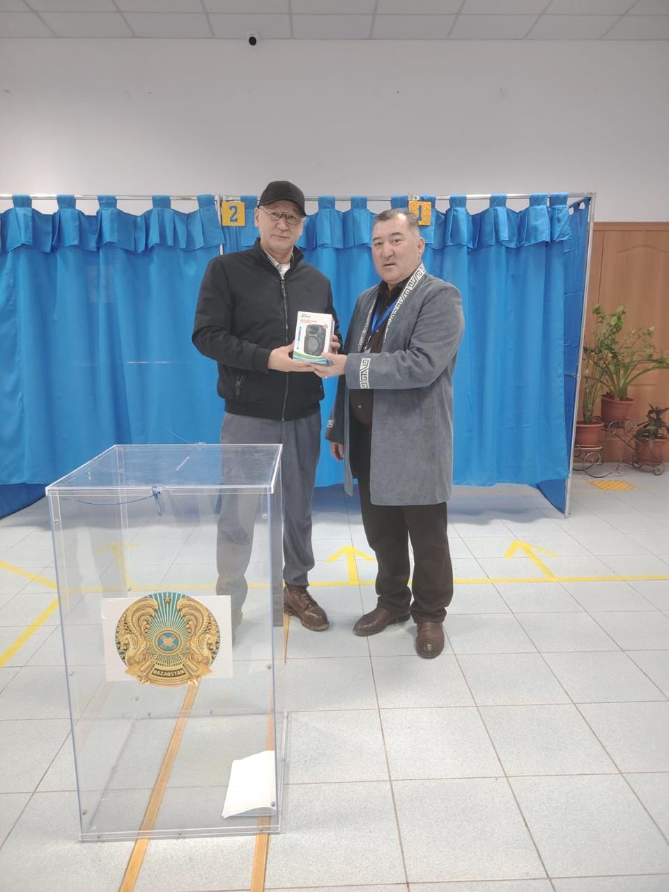 116 референдум учаскесіндегі алғашқы келушіге сыйлық табыстау сәті