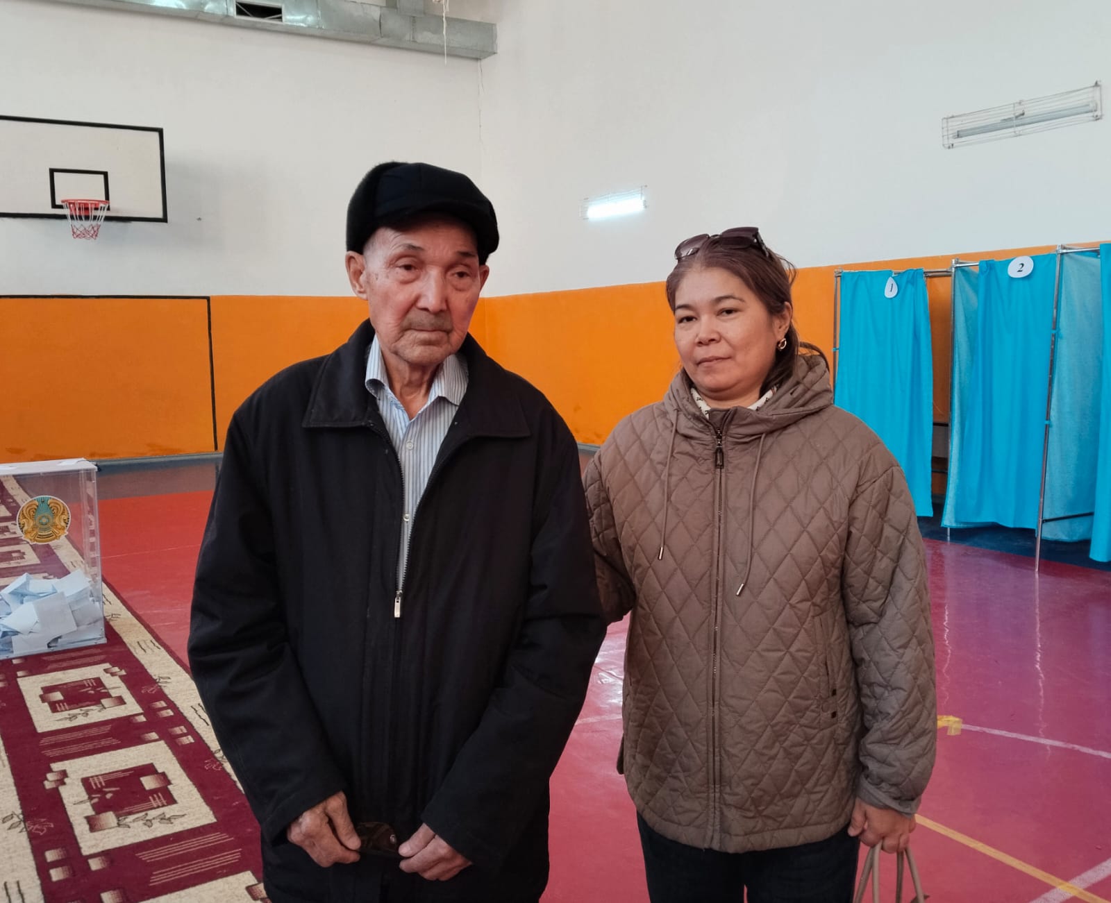 Солардың бірі – Индербор кенті тұрғыны Әділхан Жұмашев қолындағы бала-келіні Айбол мен Әселмен бірге келіп өз таңдауын жасады. Жасы ұлғайып, көру қабілеті нашарлағанына қарамастан, ел болашағына бейжай қарамай, маңызды саяси науқаннан тыс қалмауды жөн көрген екен.