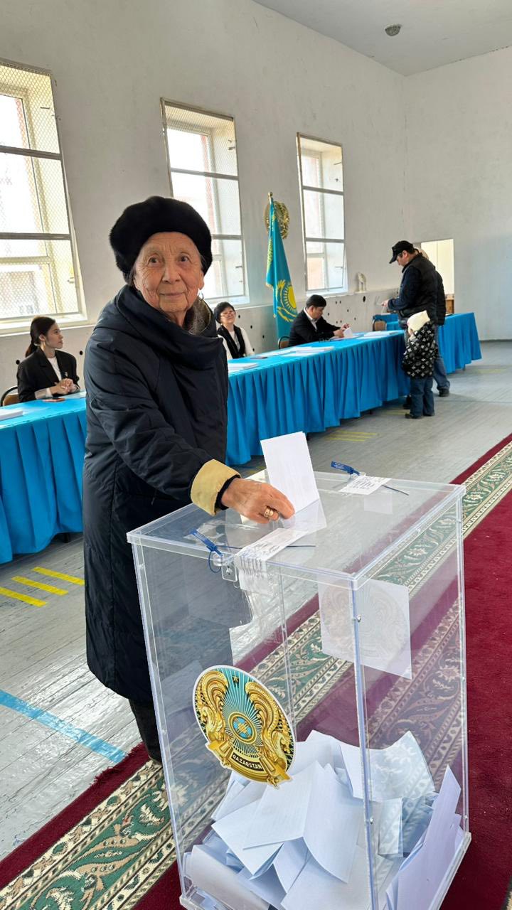 114 сайлау учаскесіне “Көктем” қазақ орта мектебінің ардагер ұстазы Қажмұрат Жамал Қажмұратқызы және мектеп мұғалімдері жанұяларымен келіп өз таңдауларын жасады.