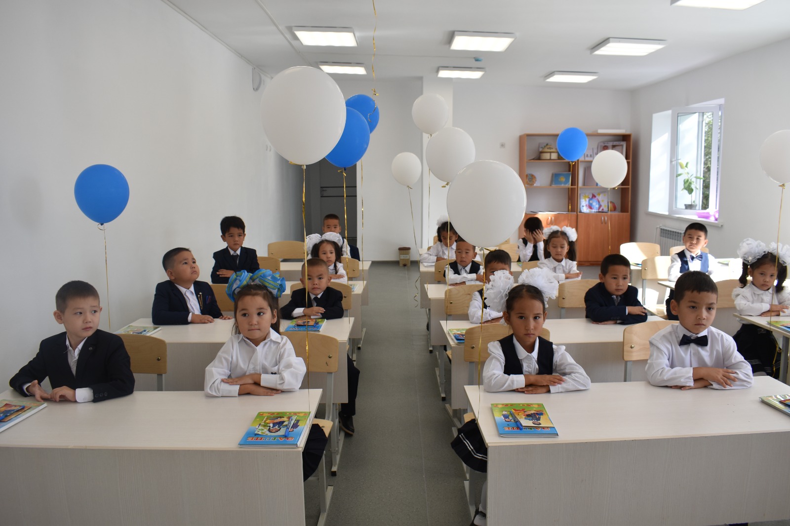 Шара аясында 1 сыныпқа қадам басқан бүлдіршіндер құттықтау өлеңдерін оқып, «Жас дәуірдің түлегіміз» деп ән салды. Алғашқы қоңырау сыңғыры сабақтың басталғанынан хабар беріп, оқушылар партаға жайғасты
