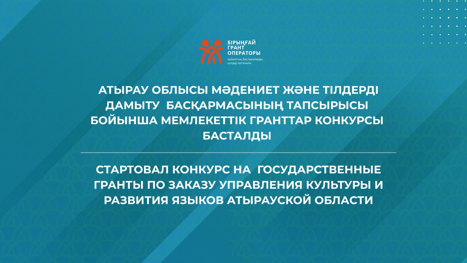 Атырау облысы Мәдениет және тілдерді дамыту басқармасының тапсырысы бойынша үкіметтік емес ұйымдарды қысқа мерзімді гранттар конкурсына қатысуға шақырамыз.