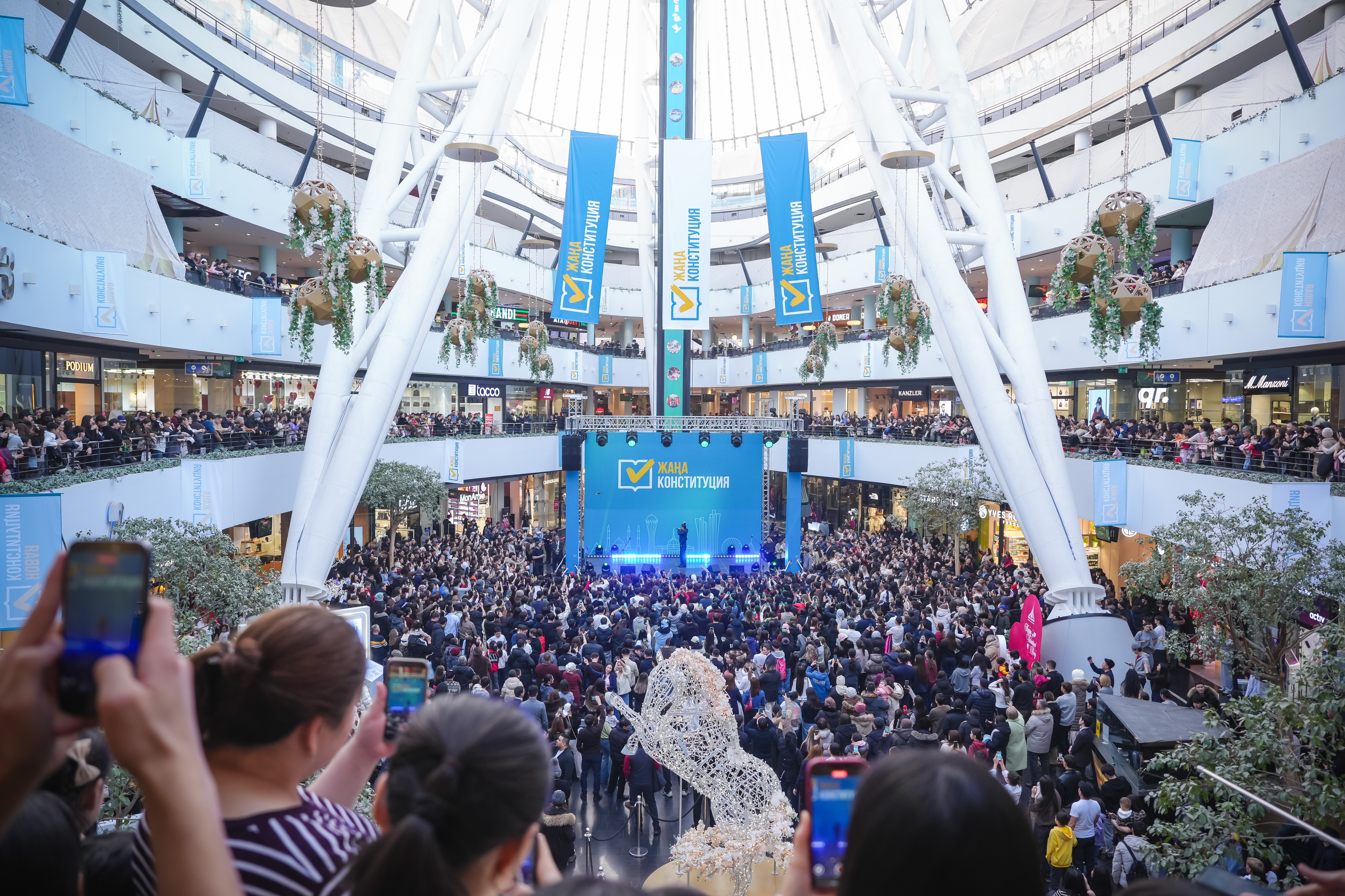 Сахнада белгілі қазақстандық орындаушылар – Raim, Дастан Оразбеков, Bayansulu, Nazzarbeck, Ақтоты Болшова және өзге де әртістер өнер көрсетті. Концерттік бағдарлама Жалпыұлттық коалиция мүшелерінің тақырып аясындағы баяндамаларымен жалғасын тапты.Жарқынбек Амантай, Мақсат Толықбай, Айкерім Есенәлі, Ақерке Искандерова Жаңа Конституция жобасының негізгі бағыттары бойынша түсіндіру жұмыстарын жүргізіп, алдағы референдум туралы азаматтарды хабардар етті.