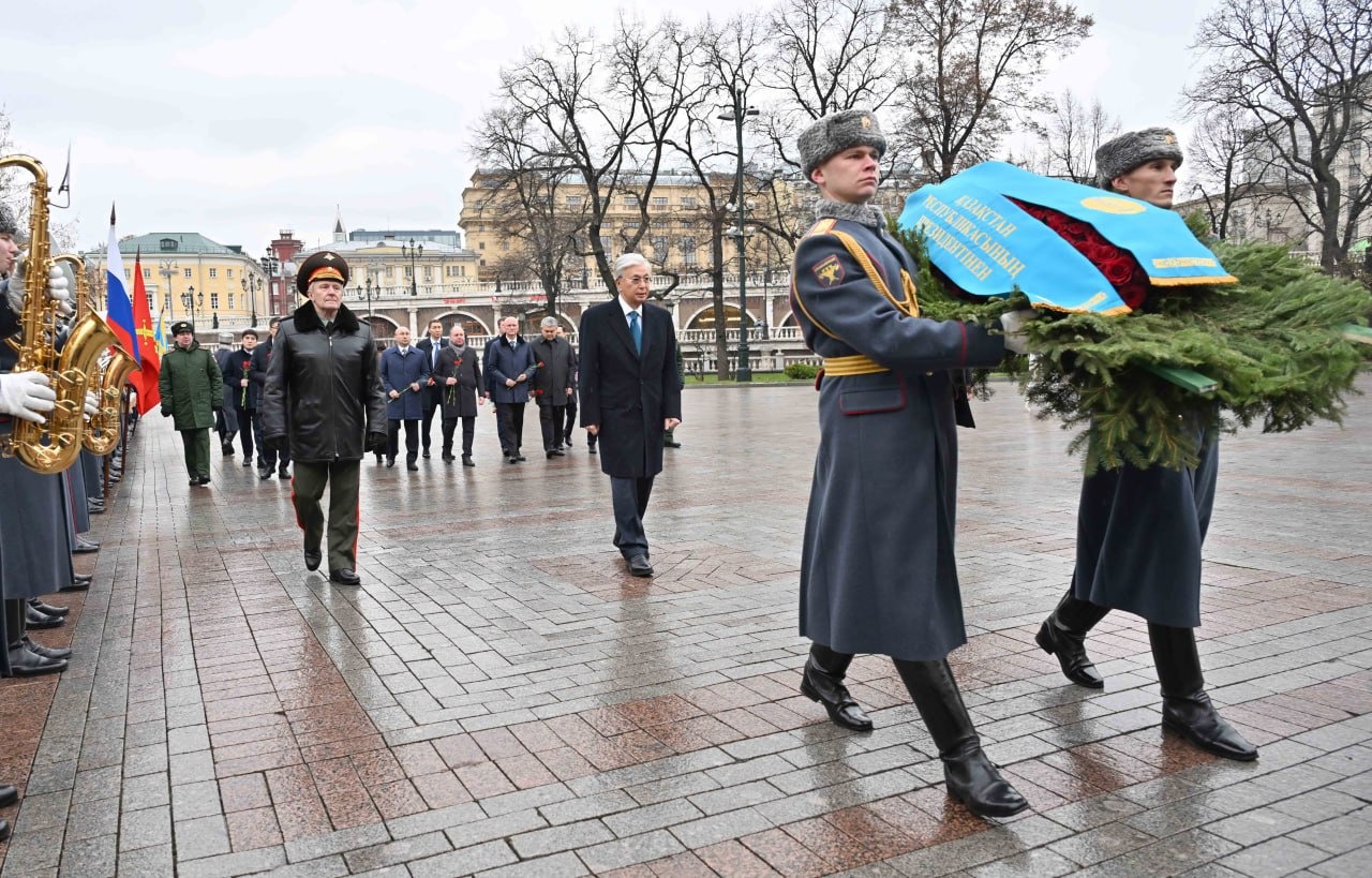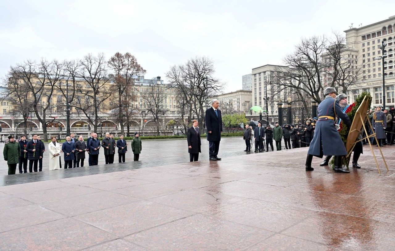 Қасым-Жомарт Тоқаевтың Ресей Федерациясына мемлекеттік сапарының екінші күні Александр бағындағы «Белгісіз жауынгер бейіті» мемориалына гүл шоғын қою рәсімінен басталды.