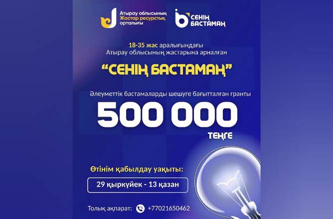 18-35 жас аралығындағы жастарға арналған әлеуметтік бастамаларды жүзеге асыруға бағытталған гранттық жобаға өтінім қалдырыңыз!