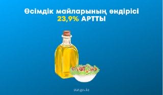 2025 жылдың алғашқы 7 айында республикада 521,2 мың тонна өсімдік майы өндірілді. Бұл көрсеткіш 2024 жылдың сәйкес кезеңімен салыстырғанда 23,9% көп.