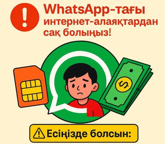 Алаяқтар жиі WhatsApp арқылы «оңай табыс» уәде етіп хабарласады. Олар SIM-картаны тіркеуді, «байланыстырылған құрылғылар» функциясы арқылы аккаунтқа кіруді немесе жеке деректерді сұрауы мүмкін. Мұның бәрі қылмыстық мақсатта пайдаланылады!