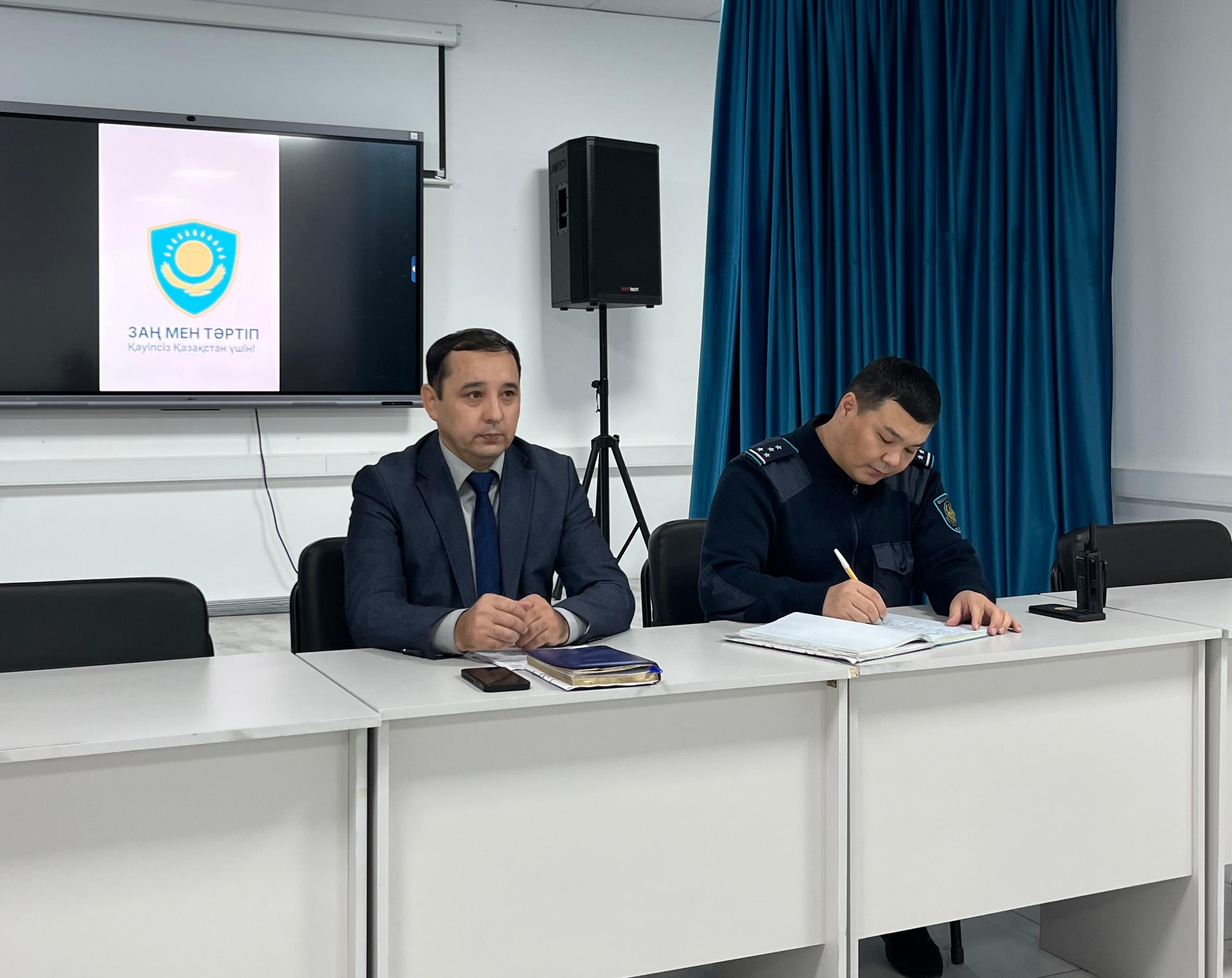 Кездесу оқушылардың қауіпсіздігін қамтамасыз етуге, жауапкершілік сезімін күшейтуге және заңға құрметпен қарауға бағытталды.