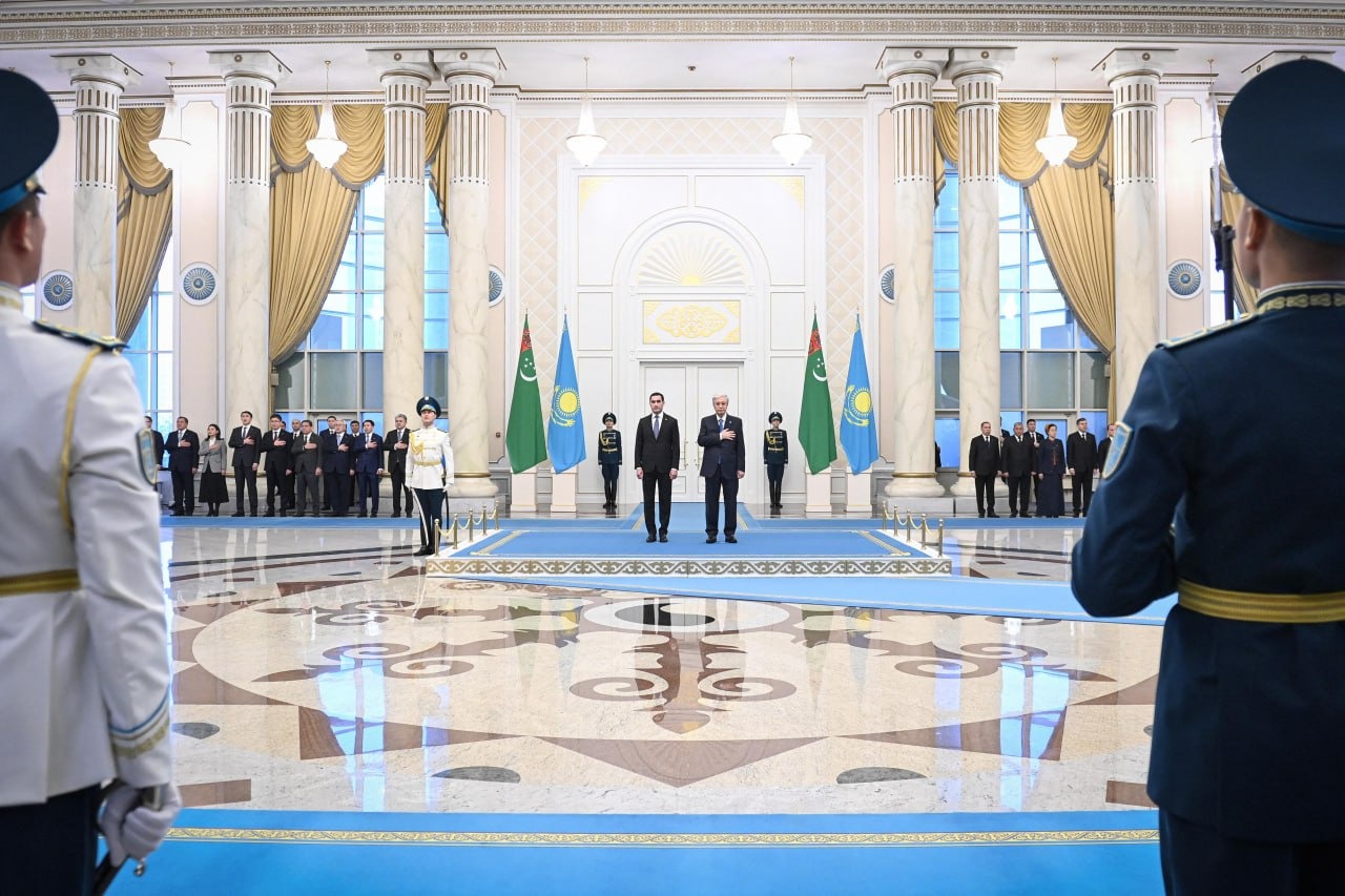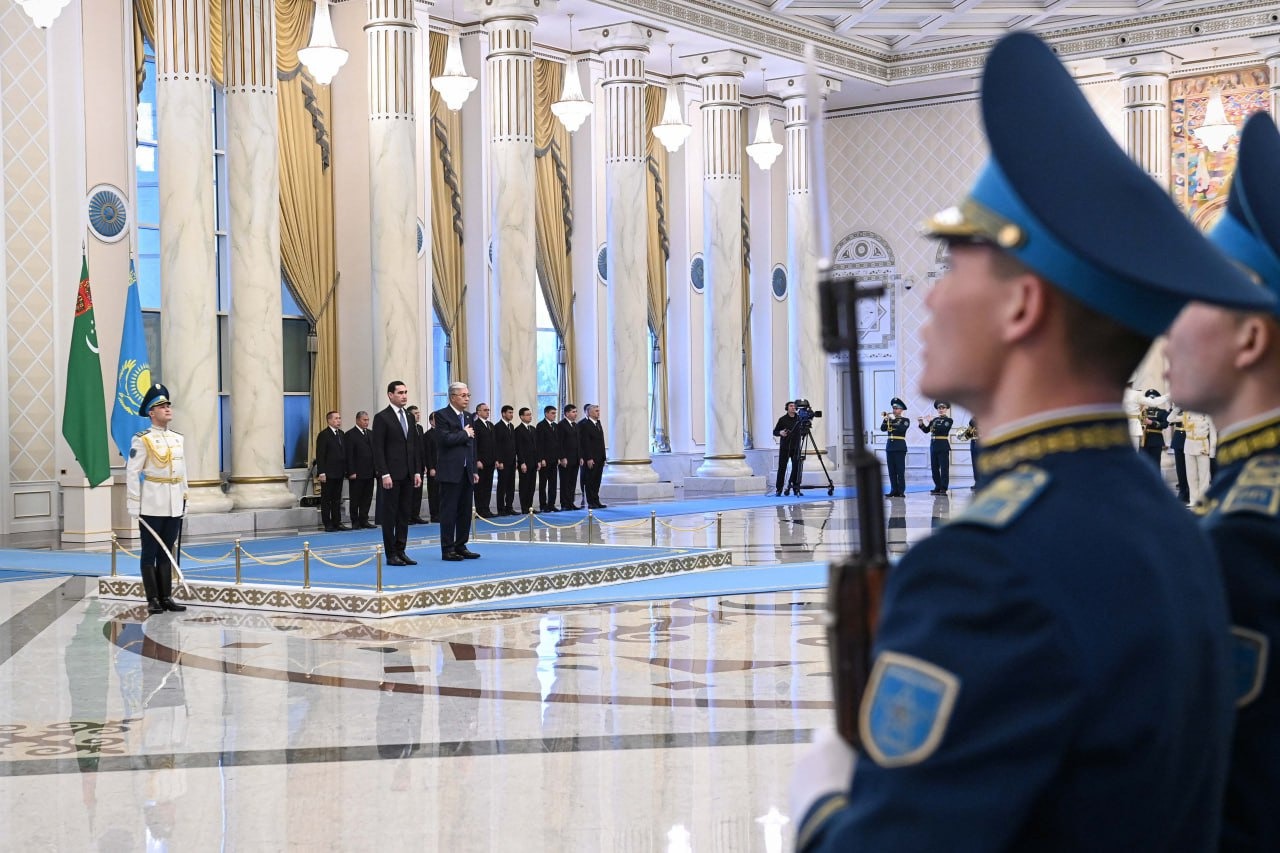 Ақордада Қазақстанға мемлекеттік сапармен келген Түрікменстан Президенті Сердар Бердімұхамедовті қарсы алу рәсімі өтіп жатыр
