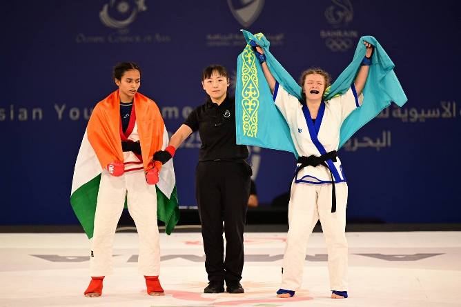 50 келіге дейінгі салмақтың финалында қазақстандық спортшы Үндістан өкілі Шрия Сатамды мерзімінен бұрын жеңді.