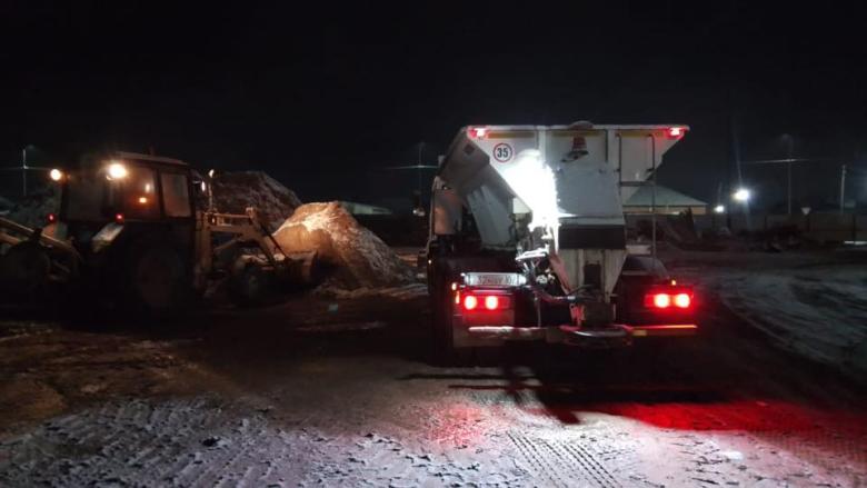 Қардың жаууына байланысты ауылішілік жолдарда көктайғақтың алдын алу мақсатында жолдарды күтіп ұстаушы «Ганюшкин құрылыс» ЖШС тұз аралас топырақ себу жұмыстарын жүргізді.